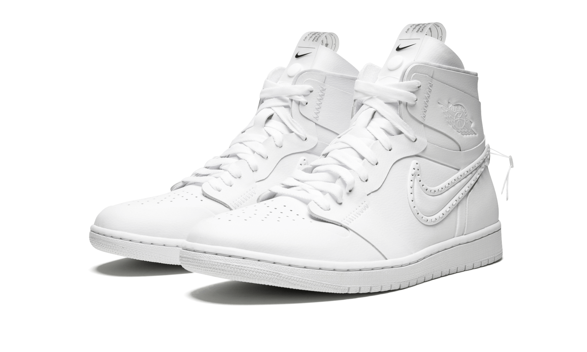 The Air Jordan 1 “Noise Canceling” is a special edition of the iconic Jordan 1 High that released within Nike’s “Noise Canceling Pack” in 2019. With the concept of stripping away all the “noise,” the Jordan 1 has a deconstructed aesthetic in all-white leather. Special details include seamless paneling that is contrasted with exaggerated stitching in select spots. A 3D treatment is applied to the Swooshes, which have an elongated loose end to the stitching. Another distinct feature is the clear tongue tabs. The all-white colorway is meant to encourage color customization, but of course, you can also leave them in their pristine white condition. The Air Jordan 1 “Noise Canceling” released in March 2019. Noise Cancelling